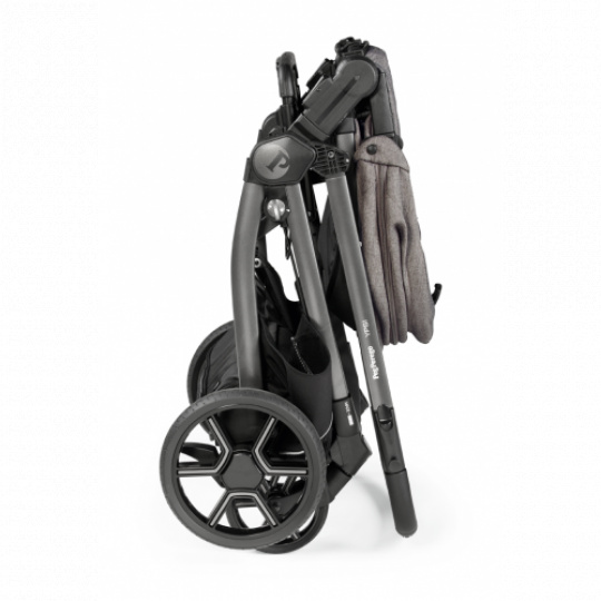 Celý kočárek lze společně se sportovní nástavbou v pozici po směru jízdy snadno, jednou rukou, složit do kompaktních rozměrů a po složení stojí samostatně.