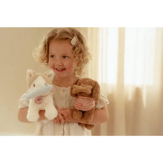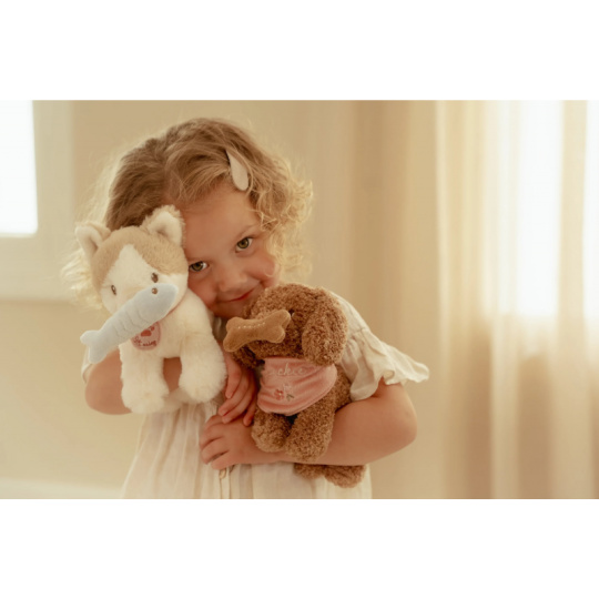 Roztomilý plyšový pejsek Jackie od Little Dutch se rychle stane nejlepším kamarádem vašeho dítěte. Díky měkkému kožíšku i sladkému výrazu si ho děti ihned zamilují. Pejsek přichází v elegantní květované tašce s předním otvorem, aby mohl zvědavě vykukovat ven. Díky tomu si ho děti mohou vzít kamkoli – na procházku, na výlet, do školky nebo třeba k prarodičům. Kolem krku má uvátaný šátek se svým jménem. Plyšová kost na hraní má uvnitř magnet, takže drží pejskovi u tlamičky. Měkký, bezpečný a detailně zpracovaný plyšák vhodný i pro nejmenší děti Podporuje kreativní hru a rozvoj fantazie Ideální dárek, který spojuje funkci plyšového kamaráda, hračky a společníka na cesty Krásně ladí s kočičkou Marley ze stejné kolekce – společně tvoří roztomilou dvojici Rozměry: 23 × 14 × 21 cm Plyšového pejska je možné prát v ruce, tašku je možno prát v pračce na 30°C. Vhodné pro děti od 12 měsíců.