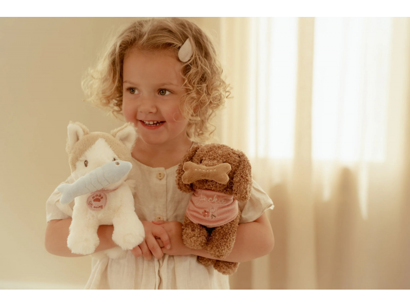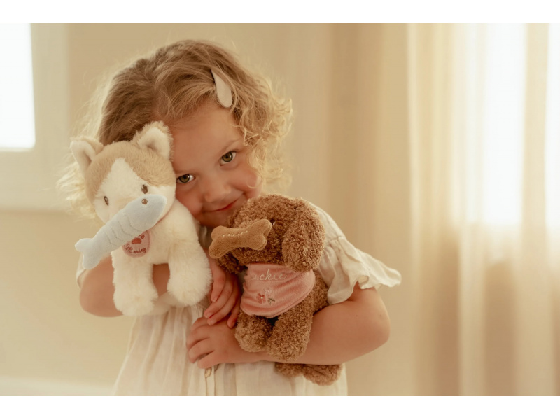 Roztomilý plyšový pejsek Jackie od Little Dutch se rychle stane nejlepším kamarádem vašeho dítěte. Díky měkkému kožíšku i sladkému výrazu si ho děti ihned zamilují. Pejsek přichází v elegantní květované tašce s předním otvorem, aby mohl zvědavě vykukovat ven. Díky tomu si ho děti mohou vzít kamkoli – na procházku, na výlet, do školky nebo třeba k prarodičům. Kolem krku má uvátaný šátek se svým jménem. Plyšová kost na hraní má uvnitř magnet, takže drží pejskovi u tlamičky. Měkký, bezpečný a detailně zpracovaný plyšák vhodný i pro nejmenší děti Podporuje kreativní hru a rozvoj fantazie Ideální dárek, který spojuje funkci plyšového kamaráda, hračky a společníka na cesty Krásně ladí s kočičkou Marley ze stejné kolekce – společně tvoří roztomilou dvojici Rozměry: 23 × 14 × 21 cm Plyšového pejska je možné prát v ruce, tašku je možno prát v pračce na 30°C. Vhodné pro děti od 12 měsíců.