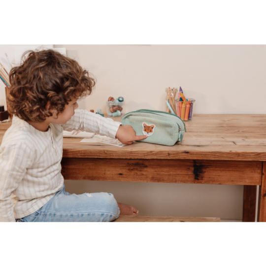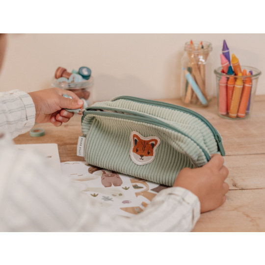 Pouzdro na psací a výtvarné potřeby v krásném provedení s aplikací lišky má dvě části uzavíratelné na zip pro přehledné uložení výtvarných potřeb vašeho malého umělce. Penál jje součástí designové kolekce hraček a doplňků Little Dutch Forest Friends inspirované životem v lese. Rozměry: 22 x 10 x 5,5 cm Složení: 100% polyester