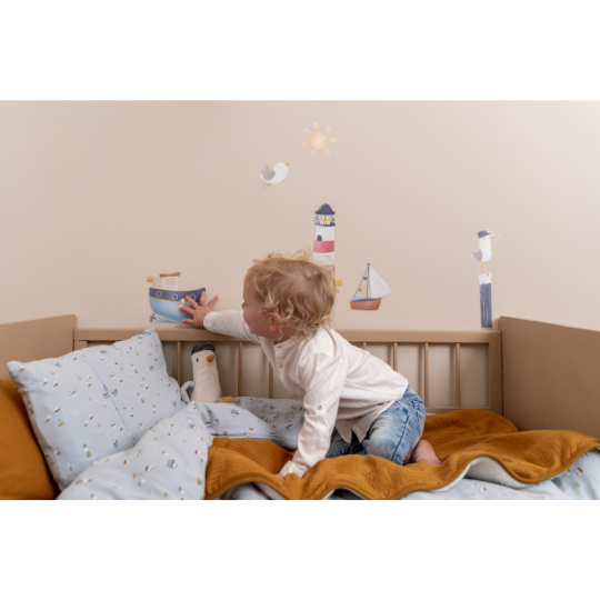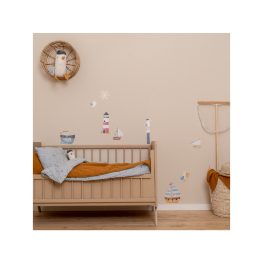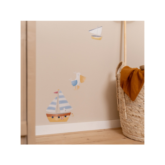Krásné samolepky v podobě lodí, mořských ptáků a dalších motivů z kolekce Little Dutch Námořnický záliv jsou určené pro použití na stěně, okně či jakémkoli hladkém a rovném povrchu. Stanou se krásnou dekorací v dětském pokoji a budou pomáhat rozvíjet fantazii vašeho dítěte. Samolepky z vinylového materiálu s matným povrchem a průhlednými okraji se snadno aplikují a snadno je i odstraníte. Samolepky jsou součástí designové kolekce Little Dutch Námořnický záliv, ve které najdete ložní prádlo, dekorativní doplňky do dětského pokoje, dřevěné a plyšové hračky i jídelní doplňky pro dětské stolování. Balení obsahuje obsahuje 10 samolepek na 2 arších formátu 42 x 30 cm.
