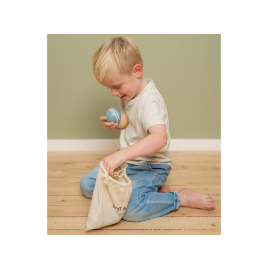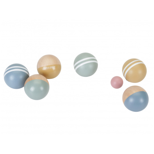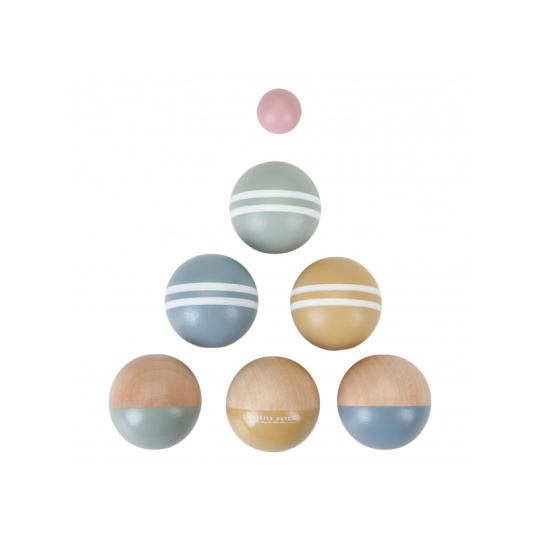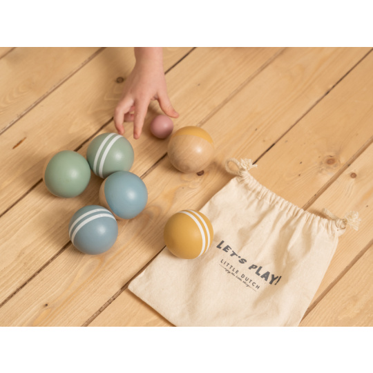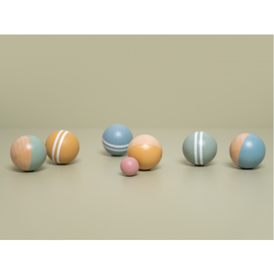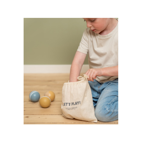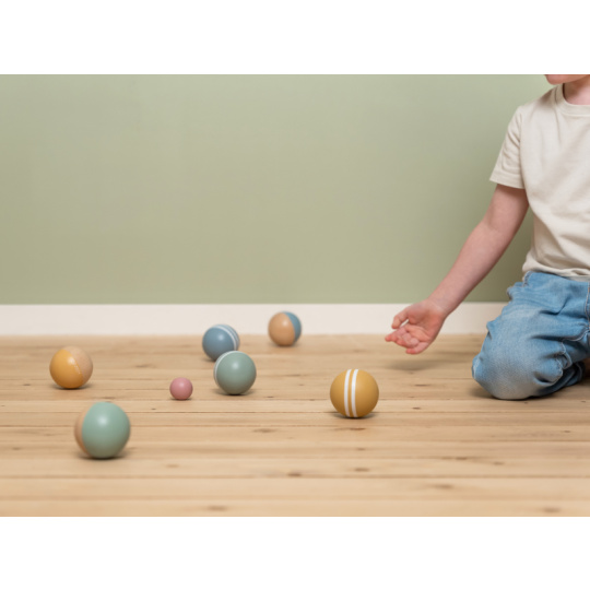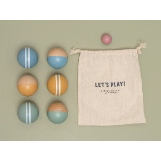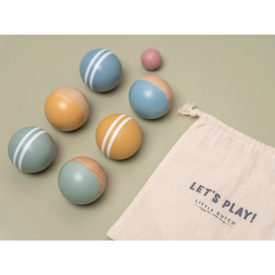 Petanque pro děti v kvalitním dřevěném provedení obsahuje 6 koulí a 1 malý míček. Petanque je skvělá venkovní hra pro děti a dospělé, která vyžaduje soustředění a trénuje zručnost a koordinaci ruka - oko. Cílem hry je hodit větší kouli co nejblíže k malému míčku. Součástí sady je textilní sáček pro snadné přenášení i uklízení celé sady. Roměry balení: 22 x 19 x 5,5 cm Vhodné pro děti od 3 let.