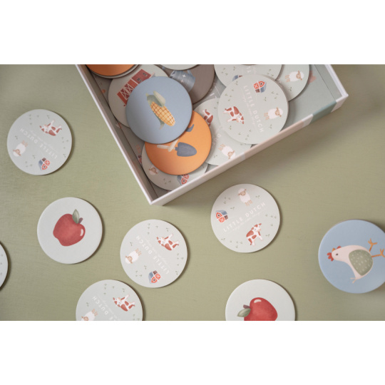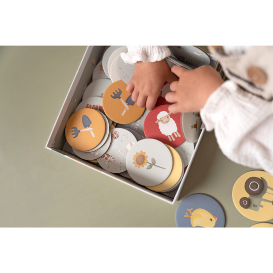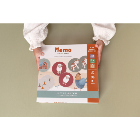 Pexeso pro nejmenší z pevného kartonu s obrázky inspirovanými životem na farmě. Zábavná hra pomáhá procvičovat soustředění a paměť vašeho dítěte. Hra je součástí designové kolekce hraček a doplňků Little Dutch Farma. Balení obsahuje 2 x 20 karet. Rozměry boxu: 21,5 x 21,5 x 5,2 cm Vhodné pro děti od 3 let.