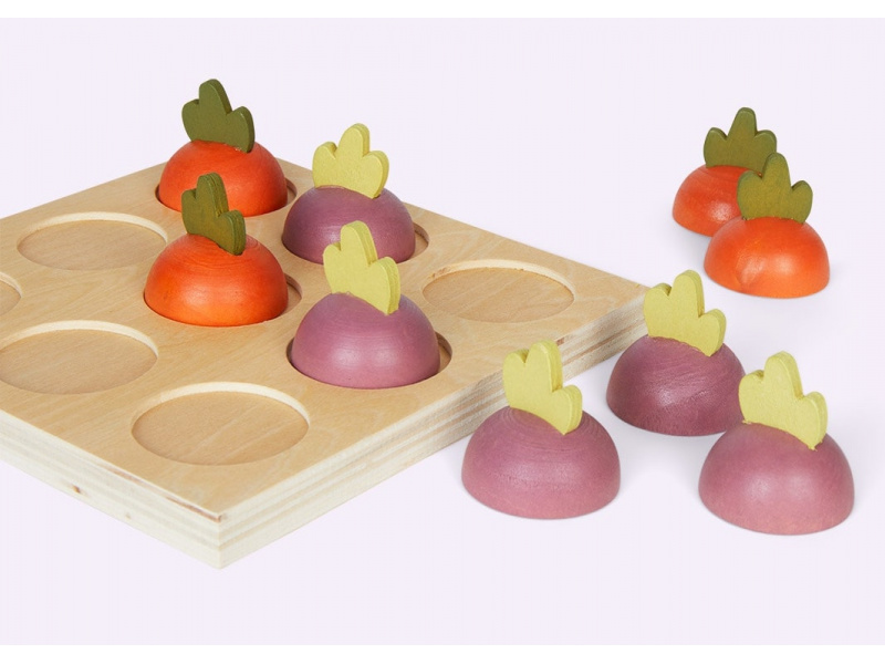 Klasické piškvorky v originálním dřevěném provedení s hracími kameny ve formě dvou druhů zeleniny. Praktický textilní sáček usnadňuje uklízení i přenášení hračky. Piškvorky jsou součástí ucelené kolekce dřevěných hraček Kids Concept Bistro. Rozměry: 17 x 17 x 5 cm Vhodné pro děti od 3 let.