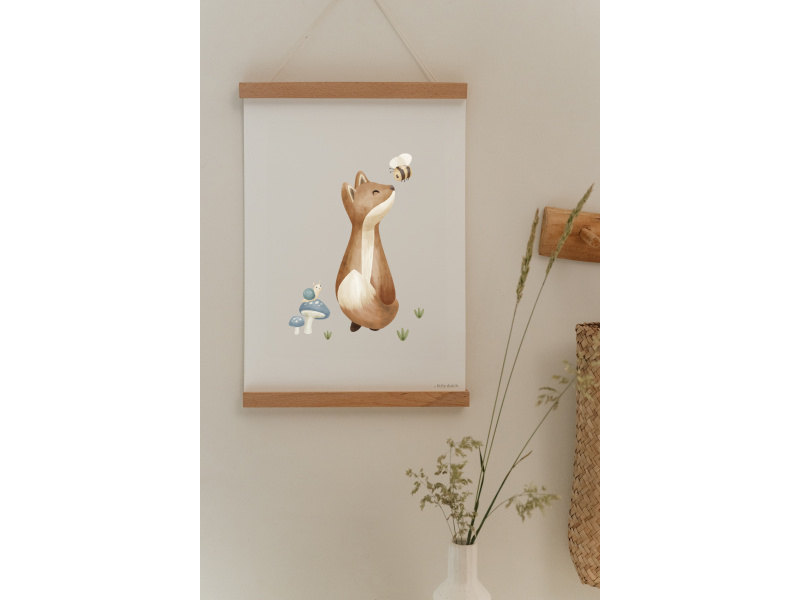 Oboustranný plakát s krásnými ilustracemi se stane originální dekorací dětského pokoje. Oboustranné provedení umožňuje snadnou výměnu obrázku pouhým otočením. Plakát je vyroben z kvalitního silného papíru. Plakát je součástí designové kolekce hraček, textilu a doplňků Little Dutch Forest Friends inspirované životem v lese. Pro snadné zavěšení plakát zkombinujte se samostatně prodávaným Little Dutch dřevěným věšákem na plakáty A3. Rozměry: 42 x 32 cm