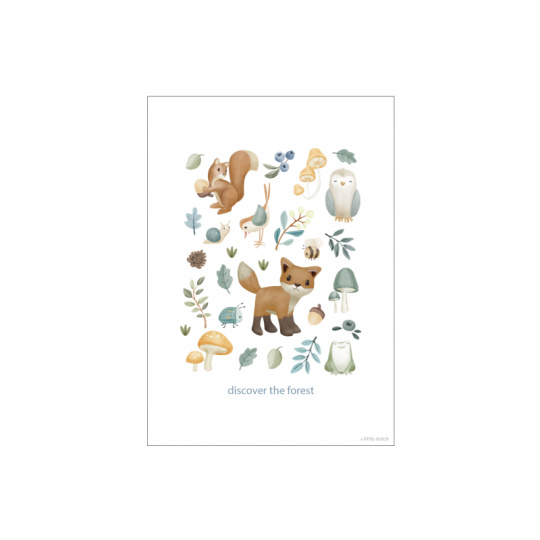 Oboustranný plakát s krásnými ilustracemi se stane originální dekorací dětského pokoje. Oboustranné provedení umožňuje snadnou výměnu obrázku pouhým otočením. Plakát je vyroben z kvalitního silného papíru. Plakát je součástí designové kolekce hraček, textilu a doplňků Little Dutch Forest Friends inspirované životem v lese. Pro snadné zavěšení plakát zkombinujte se samostatně prodávaným Little Dutch dřevěným věšákem na plakáty A3. Rozměry: 42 x 32 cm