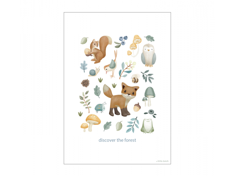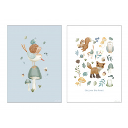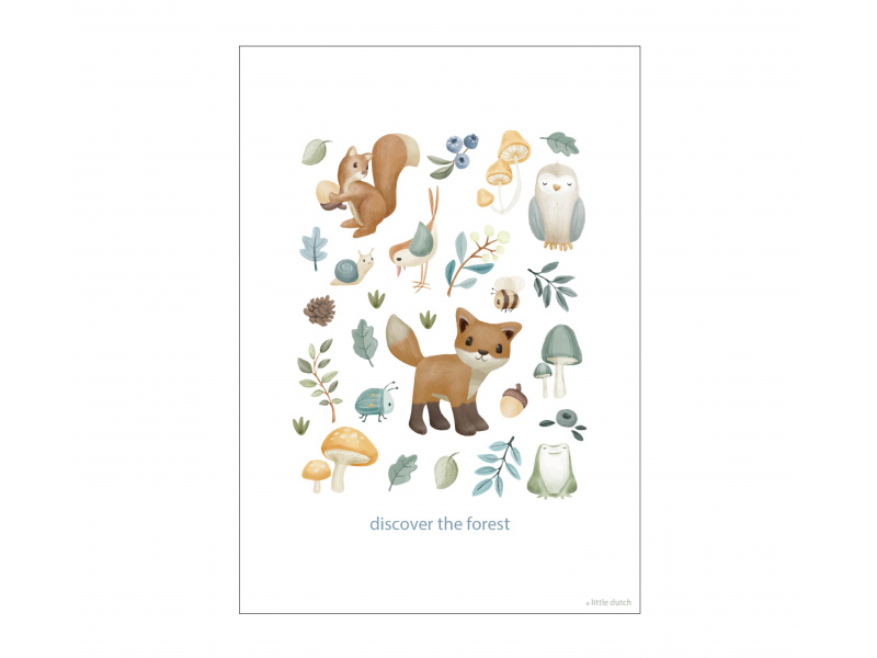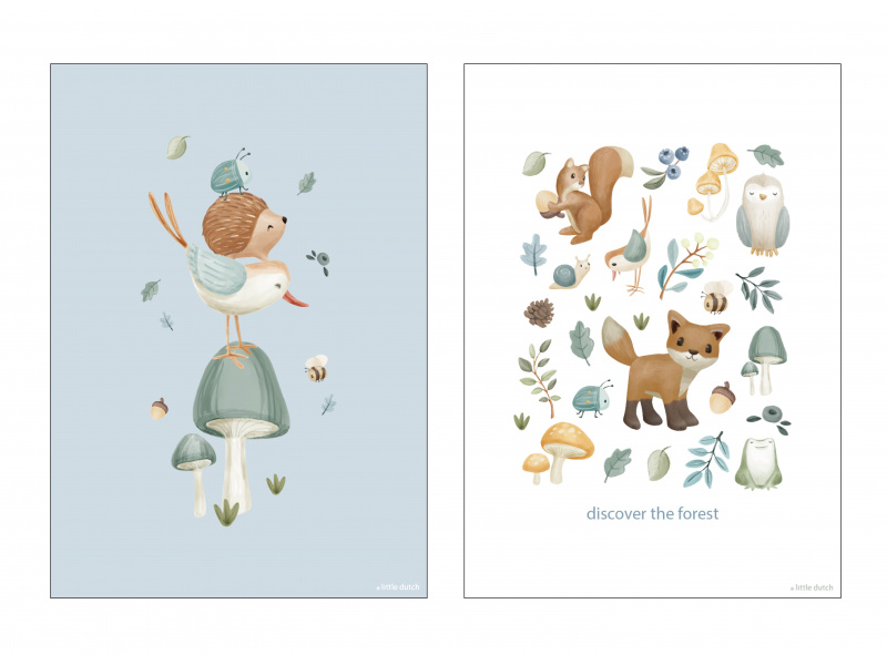 Oboustranný plakát s krásnými ilustracemi se stane originální dekorací dětského pokoje. Oboustranné provedení umožňuje snadnou výměnu obrázku pouhým otočením. Plakát je vyroben z kvalitního silného papíru. Plakát je součástí designové kolekce hraček, textilu a doplňků Little Dutch Forest Friends inspirované životem v lese. Pro snadné zavěšení plakát zkombinujte se samostatně prodávaným Little Dutch dřevěným věšákem na plakáty A3. Rozměry: 42 x 32 cm