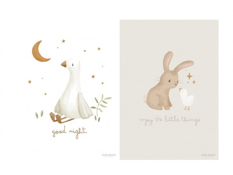 Oboustranný plakát s krásnými ilustracemi se stane originální dekorací dětského pokoje. Oboustranné provedení umožňuje snadnou výměnu obrázku pouhým otočením. Plakát je vyroben z kvalitního silného papíru. Plakát je součástí designové kolekce hraček, textilu a doplňků Little Dutch Newborn Naturals. Pro snadné zavěšení plakát zkombinujte se samostatně prodávaným Little Dutch dřevěným věšákem na plakáty A3. Rozměry: 42 x 32 cm