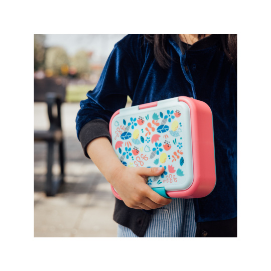 Dětský box na jídlo Quokka Twist Kids z vysoce kvalitního plastu je vhodný pro bezpečné přenášení svačiny do školy i na výlety. Box má stěny z dvojitého materiálu a spolehlivě těsnicí víko se zaklapávacím uzávěrem. Tři vnitřní přihrádky umožňují oddělit jednotlivé části svačinky. Box je vyroben z lehkého, odolného materiálu, který neabsorbuje pachy. Rozměry: 180 x 160 x 67 mm Složení: Polypropylen Neobsahuje BPA. Box není vhodný do myčky ani mikrovlnné trouby.