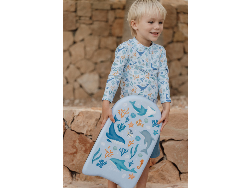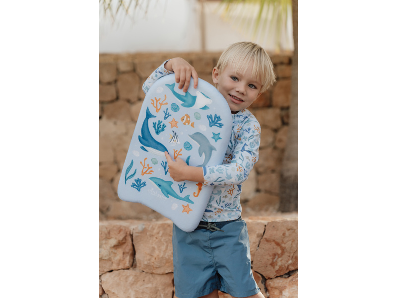 Pěnovou plaveckou desku s krásným potiskem motivů ze života pod mořskou hladinou vaše děti využijí pro hraní v bazénu i na pláži u moře. Plaveská deska je součástí designové kolekce Little Dutch Ocean Dreams. Vhodné pro děti od 3 let.