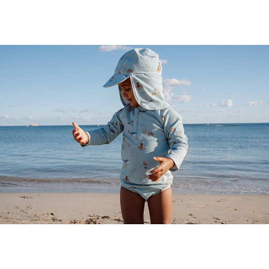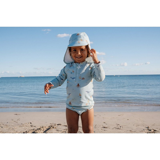 Plavky z UV ochranné tkaniny s krásným potiskem chrání vaše dítě před sluncem při koupání u moře i doma na zahradě. Ať už vaše děti milují skákání ve vlnách, koupání v bazénu nebo si rády staví hrady z písku, v těchto plavkách si mohou bezstarostně užívat celý den. Složení: 94% recyklovaný nylon, 6% spandex Ochranný faktor: UPF 40+ Při pobytu na slunci používejte pro dítě ochranné opalovací krémy. Možno prát v pračce na 30°C. Po každém použití plavky propláchněte v čisté studené vodě.