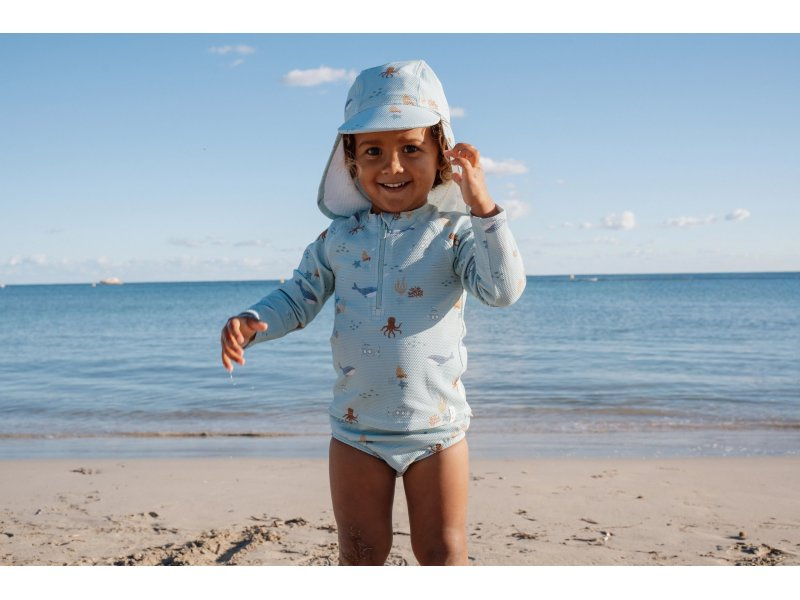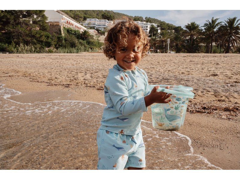 Plavky z UV ochranné tkaniny s krásným potiskem chrání vaše dítě před sluncem při koupání u moře i doma na zahradě. Ať už vaše děti milují skákání ve vlnách, koupání v bazénu nebo si rády staví hrady z písku, v těchto plavkách si mohou bezstarostně užívat celý den. Složení: 94% recyklovaný nylon, 6% spandex Ochranný faktor: UPF 40+ Při pobytu na slunci používejte pro dítě ochranné opalovací krémy. Možno prát v pračce na 30°C. Po každém použití plavky propláchněte v čisté studené vodě.
