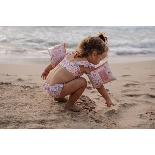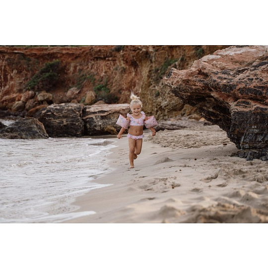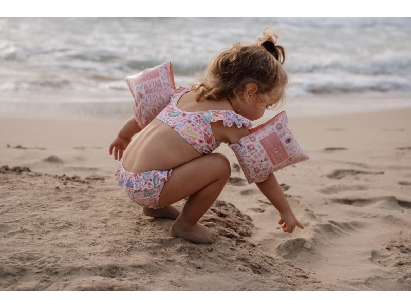 Plavky z UV ochranné tkaniny s krásným potiskem chrání vaše dítě před sluncem při koupání u moře i doma na zahradě. Ať už vaše děti milují skákání ve vlnách, koupání v bazénu nebo si rády staví hrady z písku, v těchto plavkách si mohou bezstarostně užívat celý den. Složení: 82% recyklovaný polyester, 18% elastan Při pobytu na slunci používejte pro dítě ochranné opalovací krémy. Možno prát v pračce na 30°C. Po každém použití plavky propláchněte v čisté studené vodě.