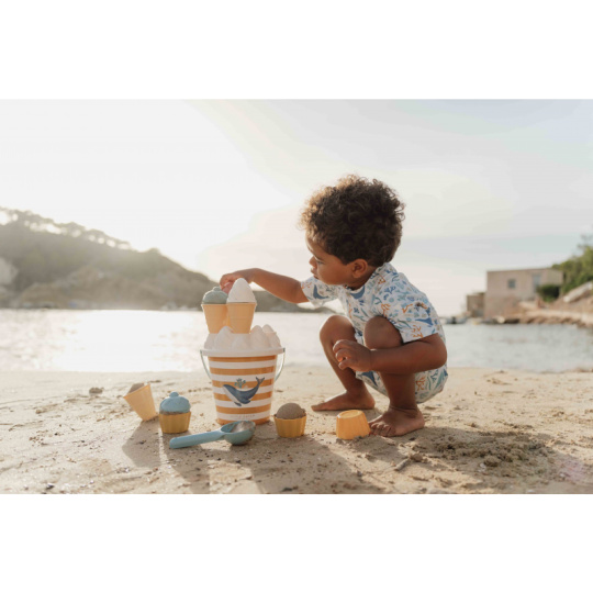 Plavky z UV ochranné tkaniny s krásným potiskem chrání vaše dítě před sluncem při koupání u moře i doma na zahradě. Ať už vaše děti milují skákání ve vlnách, koupání v bazénu nebo si rády staví hrady z písku, v těchto plavkách si mohou bezstarostně užívat celý den. Složení: 85% recyklovaný polyester, 15% elastan Ochranný faktor: UPF 50+ Při pobytu na slunci používejte pro dítě ochranné opalovací krémy. Možno prát v pračce na 30°C. Po každém použití plavky propláchněte v čisté studené vodě.