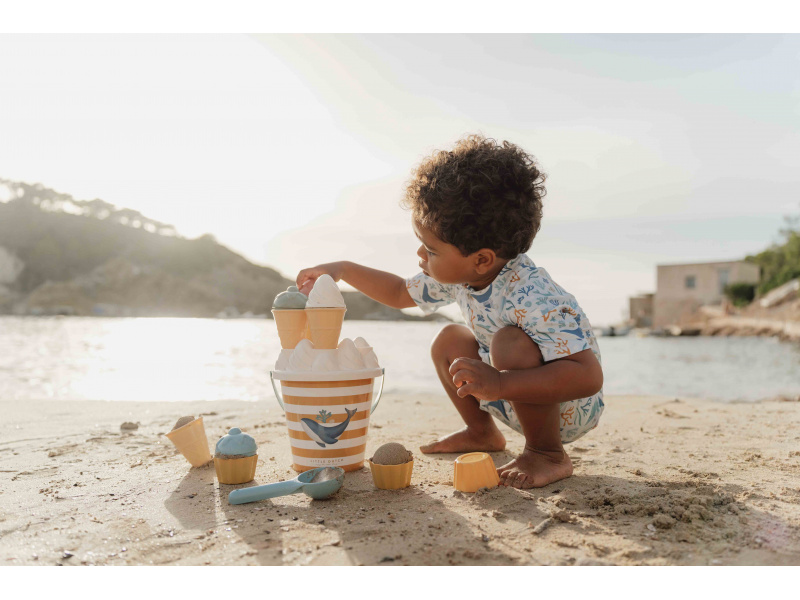 Plavky z UV ochranné tkaniny s krásným potiskem chrání vaše dítě před sluncem při koupání u moře i doma na zahradě. Ať už vaše děti milují skákání ve vlnách, koupání v bazénu nebo si rády staví hrady z písku, v těchto plavkách si mohou bezstarostně užívat celý den. Složení: 85% recyklovaný polyester, 15% elastan Ochranný faktor: UPF 50+ Při pobytu na slunci používejte pro dítě ochranné opalovací krémy. Možno prát v pračce na 30°C. Po každém použití plavky propláchněte v čisté studené vodě.
