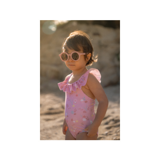 Plavky z UV ochranné tkaniny s krásným potiskem chrání vaše dítě před sluncem při koupání u moře i doma na zahradě. Ať už vaše děti milují skákání ve vlnách, koupání v bazénu nebo si rády staví hrady z písku, v těchto plavkách si mohou bezstarostně užívat celý den. Složení: 82% recyklovaný polyester, 18% elastan Ochranný faktor: UPF 50+ Při pobytu na slunci používejte pro dítě ochranné opalovací krémy. Možno prát v pračce na 30°C. Po každém použití plavky propláchněte v čisté studené vodě.