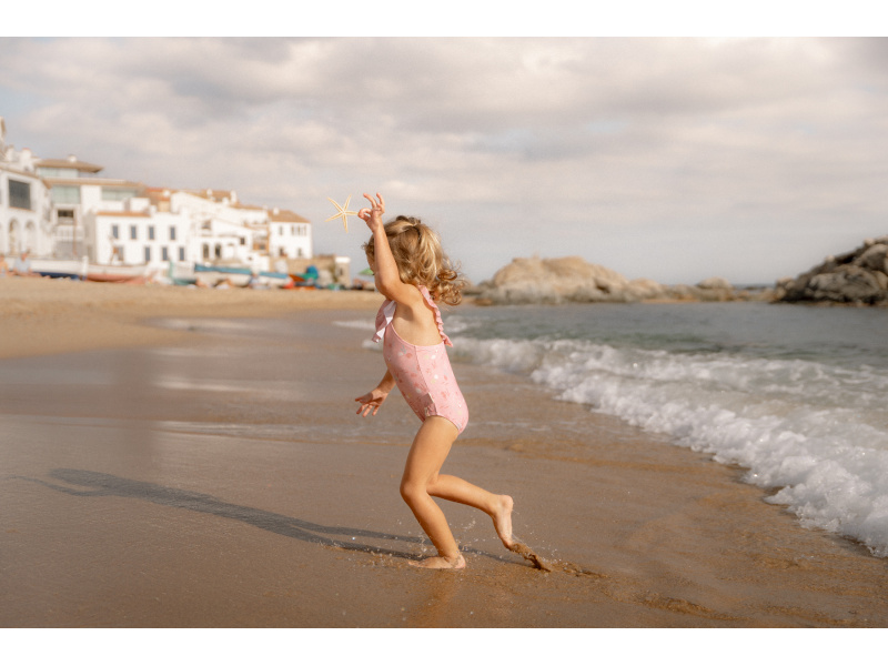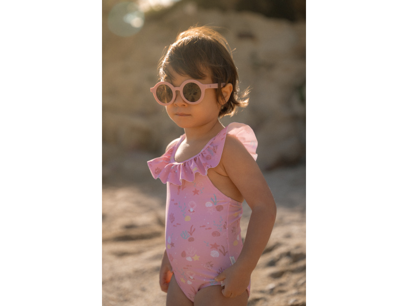 Plavky z UV ochranné tkaniny s krásným potiskem chrání vaše dítě před sluncem při koupání u moře i doma na zahradě. Ať už vaše děti milují skákání ve vlnách, koupání v bazénu nebo si rády staví hrady z písku, v těchto plavkách si mohou bezstarostně užívat celý den. Složení: 82% recyklovaný polyester, 18% elastan Ochranný faktor: UPF 50+ Při pobytu na slunci používejte pro dítě ochranné opalovací krémy. Možno prát v pračce na 30°C. Po každém použití plavky propláchněte v čisté studené vodě.