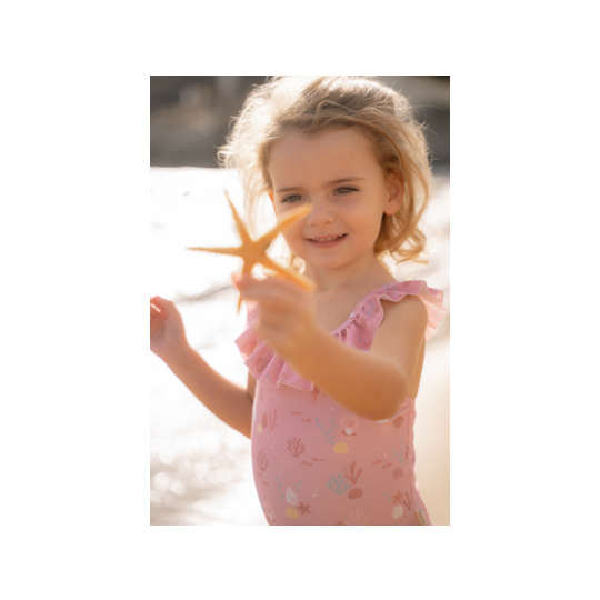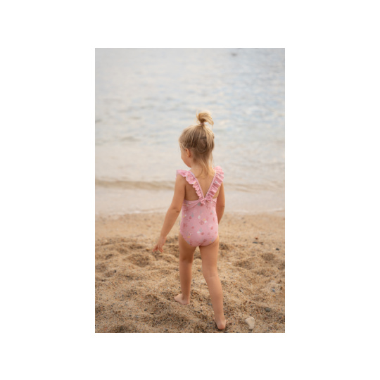 Plavky z UV ochranné tkaniny s krásným potiskem chrání vaše dítě před sluncem při koupání u moře i doma na zahradě. Ať už vaše děti milují skákání ve vlnách, koupání v bazénu nebo si rády staví hrady z písku, v těchto plavkách si mohou bezstarostně užívat celý den. Složení: 82% recyklovaný polyester, 18% elastan Ochranný faktor: UPF 50+ Při pobytu na slunci používejte pro dítě ochranné opalovací krémy. Možno prát v pračce na 30°C. Po každém použití plavky propláchněte v čisté studené vodě.