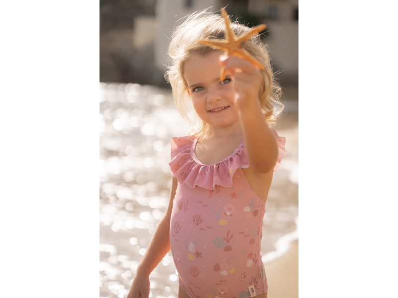 Plavky z UV ochranné tkaniny s krásným potiskem chrání vaše dítě před sluncem při koupání u moře i doma na zahradě. Ať už vaše děti milují skákání ve vlnách, koupání v bazénu nebo si rády staví hrady z písku, v těchto plavkách si mohou bezstarostně užívat celý den. Složení: 82% recyklovaný polyester, 18% elastan Ochranný faktor: UPF 50+ Při pobytu na slunci používejte pro dítě ochranné opalovací krémy. Možno prát v pračce na 30°C. Po každém použití plavky propláchněte v čisté studené vodě.