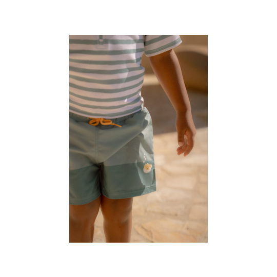 Plavky z UV ochranné tkaniny s krásným potiskem chrání vaše dítě před sluncem při koupání u moře i doma na zahradě. Ať už vaše děti milují skákání ve vlnách, koupání v bazénu nebo si rády staví hrady z písku, v těchto plavkách si mohou bezstarostně užívat celý den. Složení: 100% recyklovaný polyester Ochranný faktor: UPF 50+ Při pobytu na slunci používejte pro dítě ochranné opalovací krémy. Možno prát v pračce na 30°C. Po každém použití plavky propláchněte v čisté studené vodě.