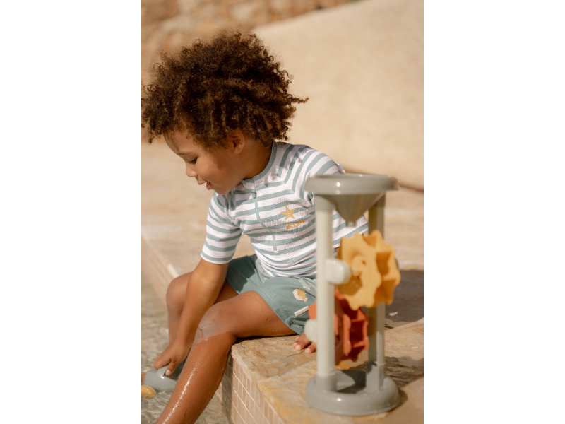 Plavky z UV ochranné tkaniny s krásným potiskem chrání vaše dítě před sluncem při koupání u moře i doma na zahradě. Ať už vaše děti milují skákání ve vlnách, koupání v bazénu nebo si rády staví hrady z písku, v těchto plavkách si mohou bezstarostně užívat celý den. Složení: 100% recyklovaný polyester Ochranný faktor: UPF 50+ Při pobytu na slunci používejte pro dítě ochranné opalovací krémy. Možno prát v pračce na 30°C. Po každém použití plavky propláchněte v čisté studené vodě.