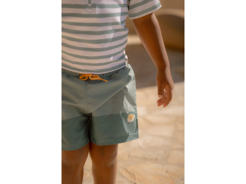 Plavky z UV ochranné tkaniny s krásným potiskem chrání vaše dítě před sluncem při koupání u moře i doma na zahradě. Ať už vaše děti milují skákání ve vlnách, koupání v bazénu nebo si rády staví hrady z písku, v těchto plavkách si mohou bezstarostně užívat celý den. Složení: 100% recyklovaný polyester Ochranný faktor: UPF 50+ Při pobytu na slunci používejte pro dítě ochranné opalovací krémy. Možno prát v pračce na 30°C. Po každém použití plavky propláchněte v čisté studené vodě.