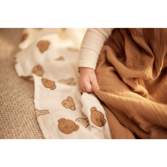 Pleny z jemné 100% bavlny s krásným potiskem nabízí široké použití při péči o miminko. Díky vysoké savosti je využijete jako jemnou osušku, podložku při přebalování, díky svým rozměrům je ideální i pro přikrytí nebo zabalení miminka. Složení: 100% bavlněný mušelín Balení obsahuje 2 ks plen rozměru 115 x 115 cm.