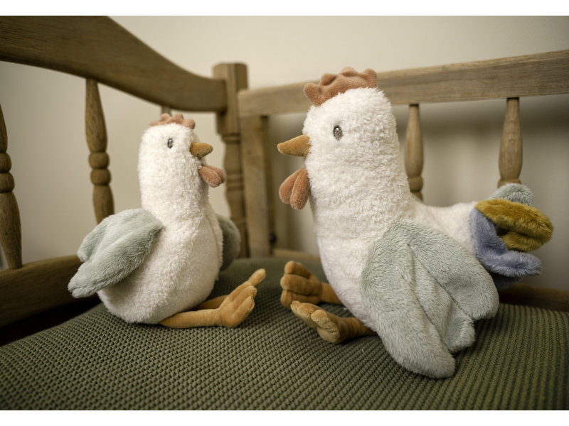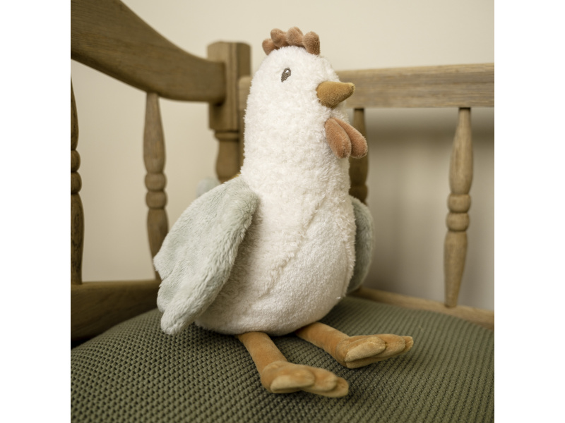Jemná plyšová hračka v podobě roztomilé slepičky je ideální jako mazlík do postýlky pro lepší usínání vašeho dítěte. Slepička umí sedět a může se tak stát i krásnou dekorací v dětském pokojit. Hračka je součástí designové kolekce hraček Little Dutch Farma. Rozměry: 17 x 13 cm Vhodné pro děti od narození.