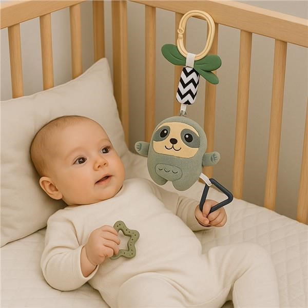 Hračka má originální design lenocha, který vzbuzuje zvědavost a vybízí ke hře. Je vybavena hrací skříňkou, která vydává zvuky a klipem, který umožňuje hračku snadno připevnit ke kočárku, autosedačce nebo postýlce. Tato hračka poskytuje nezapomenutelné chvíle zábavy a radosti.