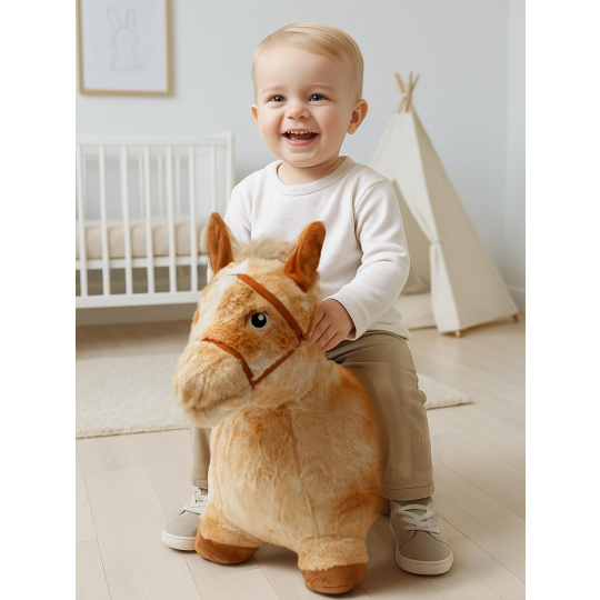 Plyšové nafukovací hopsadlo je zárukou dlouhotrvající zábavy pro Vaše dítě. Hopsadlo se pohodlně drží za uši a obsahuje zvukový modul, který po zmáčknutí mezi ušima vydává realistický zvuk koníka. Je potaženo plyšovým materiálem, který je příjemný na dotek a neklouže. Součástí balení je pumpička k pohodlnému nafouknutí a baterie (3xLR44).