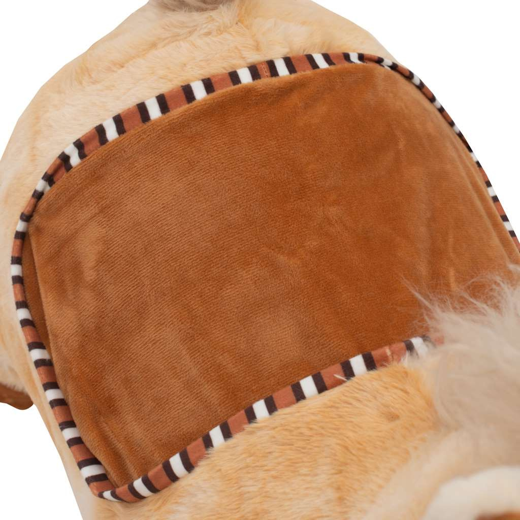 Plyšové nafukovací hopsadlo je zárukou dlouhotrvající zábavy pro Vaše dítě. Hopsadlo se pohodlně drží za uši a obsahuje zvukový modul, který po zmáčknutí mezi ušima vydává realistický zvuk koníka. Je potaženo plyšovým materiálem, který je příjemný na dotek a neklouže. Součástí balení je pumpička k pohodlnému nafouknutí a baterie (3xLR44).
