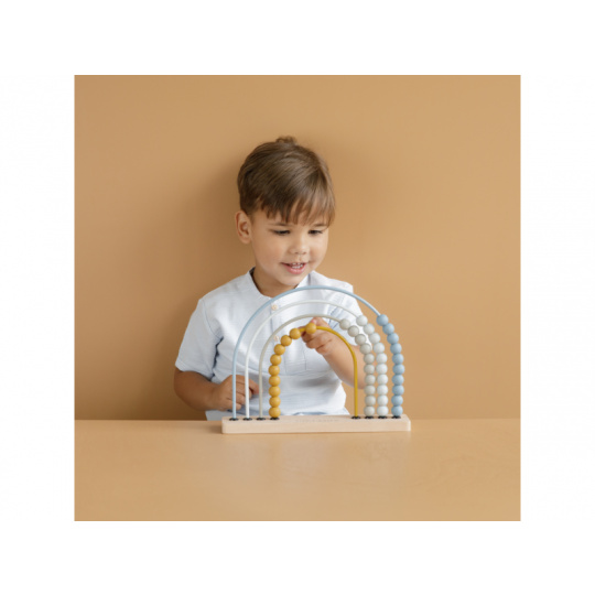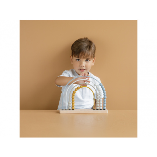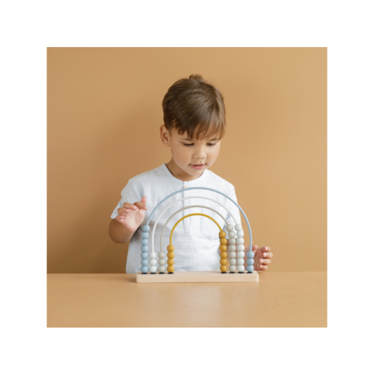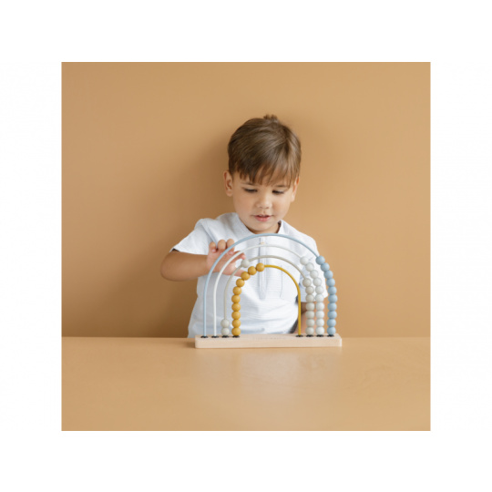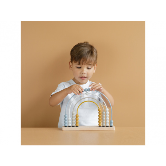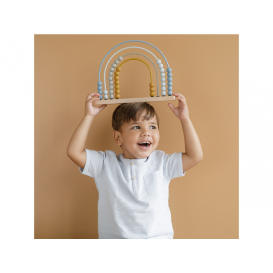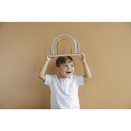 Počítání bude ještě zábavnější díky počitadlu ve tvaru duhy! Děti milují posouvání korálků tam a zpět. A když jsou trochu starší, mohou si s pomocí počítadla procvičovat barvy i počítání. Hračka pomáhá rozvíjet jemnou motoriku dítěte. Rozměry: 6 x 27,6 x 21,3 cm Vhodné pro děti od 12 měsíců.