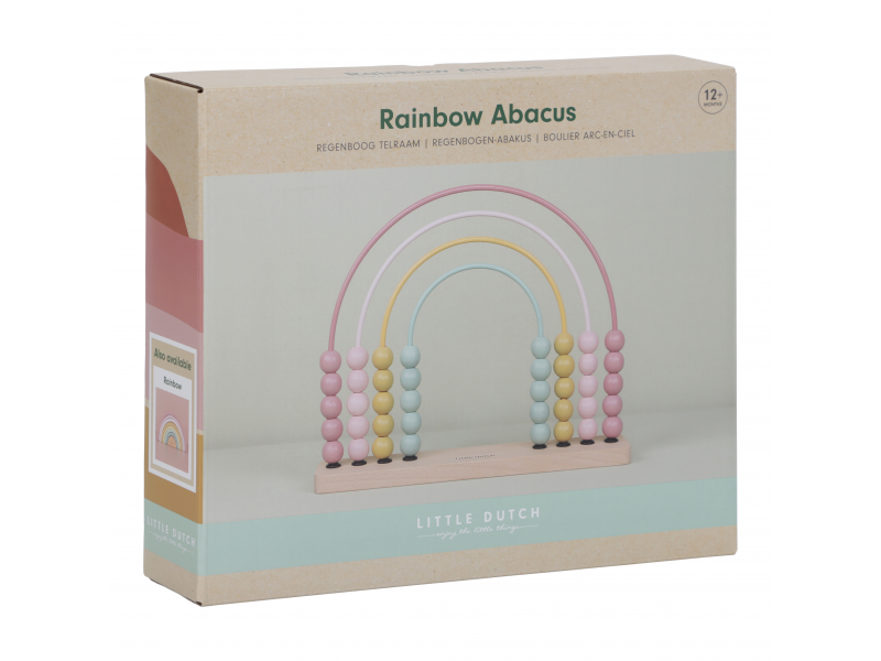 Počítání bude ještě zábavnější díky počitadlu ve tvaru duhy! Děti milují posouvání korálků tam a zpět. A když jsou trochu starší, mohou si s pomocí počítadla procvičovat barvy i počítání. Hračka pomáhá rozvíjet jemnou motoriku dítěte. Počítadlo je součástí designové kolekce hraček Little Dutch Fairy Garden inspirované životem na zahradě. Vyrobeno z dřeva certifikovaného FSC. Rozměry: 6 x 27,6 x 21,3 cm Vhodné pro děti od 12 měsíců.