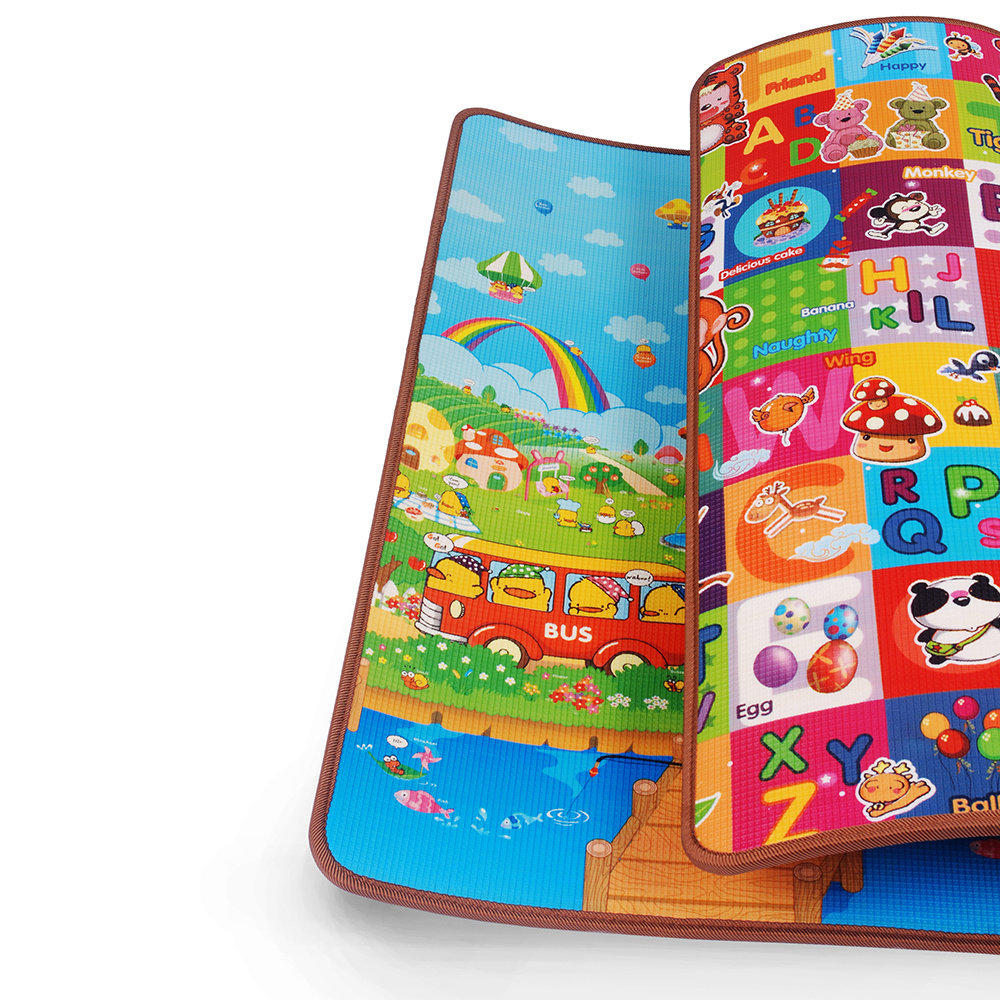 Podložka má oboustranný potisk s veselými motivy, protiskluzovou úpravu na povrchu, skvěle izoluje a odhlučňuje, je voděodolná, jemná na povrchu, elastická, avšak tvarově stabilní, skladná a především poskytuje dětem bezpečí při hře. - vyrobená z vysoce kvalitního materiálu XPE, ze kterého se vyrábí nádobí a kojenecké láhve - XPE je netoxický, hypoalergenní materiál, bez zápachu odolný proti vlhkosti a přátelský k životnímu prostředí - pro děti od narození - 0+ Vyhovuje evropské směrnici 2005/84/EC a normě EN71 část 1, 2 a 3, testováno v ČR. Materiál: 100% XPE pěna. Rozměr: d. 180, š. 150, v. 1 cm **Adresa dodavatele:** ags 92, s.r.o., Drahobejlova 2515/18, 190 00 Praha, Česká republika info@petiteetmars.com