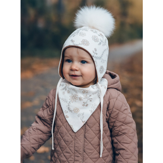 Podzimní 2-dílný set české značky New Baby Special One. Set se skládá z čepičky a šátku na krk. Čepička s podšívkou je krásně tvarovaná na ouška, zavazuje se na tkaničky a dobře drží na hlavičce miminka. Je zdobena krásnou bambulkou a celý set je vyroben z příjemné na dotek látky, která je potištěná kytičkami. Šátek na krk lze zapnout do 2 velikostí. Kvalitní a velmi praktický doplněk do chladného počasí. Pro New Baby je velmi důležitá spokojenost zákazníka a právě proto vám nabízíme set z kolekce New Baby Special One. Vrchní materiál: 95% bavlna, 5% elastan. Podšívka: 95%bavlna, 5% elastan. Vhodné na zimu i podzim.