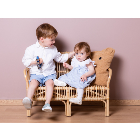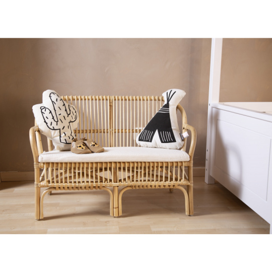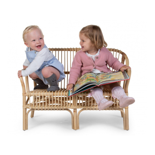 Ratanová dětská pohovka bude vypadat skvěle v obývacím nebo dětském pokoji. Měkká sedací podložka a vysoká opěrka zad zajistí pohodlné sezení. Potah sedací podložky je možné prát v pračce. Rozměry: 80 x 45 x 55 cm Nosnost: 25 kg Vhodné pro děti od 3 let.