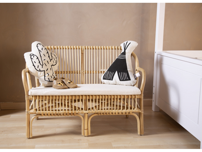 Ratanová dětská pohovka bude vypadat skvěle v obývacím nebo dětském pokoji. Měkká sedací podložka a vysoká opěrka zad zajistí pohodlné sezení. Potah sedací podložky je možné prát v pračce. Rozměry: 80 x 45 x 55 cm Nosnost: 25 kg Vhodné pro děti od 3 let.