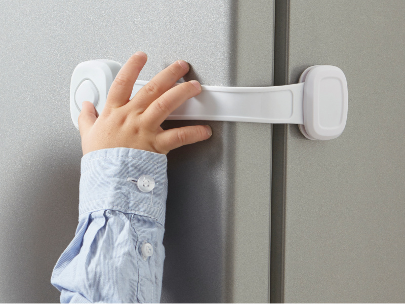 Samolepicí pojistka brání dětem dostat se do skříněk s dvířky, do lednice apod. Pojistku snadno instalujete na dveře a bok skříňky bez nutnosti vrtání. Dospělý dokáže pojistku snadno otevřít díky "neviditelnému" způsobu otevírání - zámek pojistky je vyroben z pružného materiálu a otevírá se současným zmáčknutím jednou rukou z horní a spodní strany zámku. Velké tlačítko na přední straně zámku není funkční, pouze slouží k odlákání pozornosti dítěte, které se bude snažit tlačítko mačkat, ale zámek s jeho pomocí otevřít nelze. Když děti vyrostou, pojistku snadno odstraníte. Vhodné pro použití od 6 měsíců.