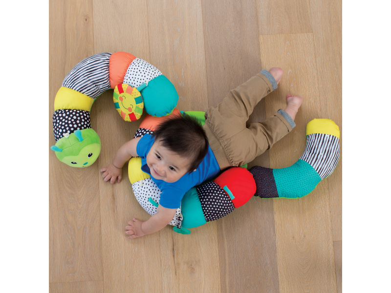 Skládací polštářek ve tvaru plyšové housenky je skvělá hračka, která podporuje motorický vývoj dítěte. Housenka může být použita dvěma základními způsoby: opěrný polštářek pro hru v poloze na bříšku, která je důležitá pro rozvoj svalů na krku a zádech křesílko s opěrkou pro děti, které začínají samostatně sedět. Odnímatelné hračky včetně kousátka je možné připevnit na různá místa na polštářku. Housenka ve výrazných barvách bude sloužit i jako krásná dekorace dětského pokoje. Rozměry balení: 46 x 30,5 x 15,5 cm Vhodné pro děti od narození.