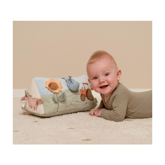 Polštářek z jemného, měkkého materiálu s krásnými motivy života na farmě je speciálně navržený, aby podporoval hraní dítěte na bříšku. Hračky na polštářku i originální vyšívané aplikace lákají dítě ke zkoumání a pozorování. Každá strana polštářku je jiná, takže stačí polštářek otočit a nabídnout dítěti nové podněty k zabavení i rozvíjení jeho jednotlivých smyslů. Pro malého kojence, který tráví většinu dne i noci ležením na zádech, je důležité, aby trávil několikrát denně čas ležením na bříšku a takzvaným “pasením koníčků”. Poloha na bříšku přináší děťátku jiný pohled na svět a posiluje krční a zádové svaly, které mu později umožňují začít se přetáčet, lézt a sedět bez opory. Polštářek je součástí designové kolekce hraček Little Dutch Farma. Rozměry: 34 x 18 x 18 cm Vhodné pro děti od narození.