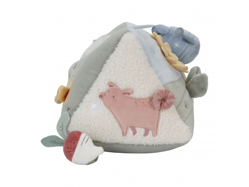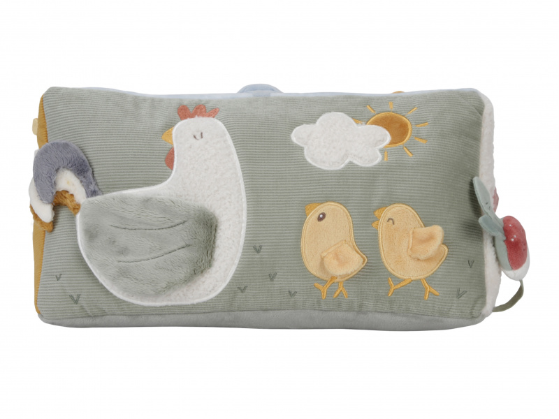 Polštářek z jemného, měkkého materiálu s krásnými motivy života na farmě je speciálně navržený, aby podporoval hraní dítěte na bříšku. Hračky na polštářku i originální vyšívané aplikace lákají dítě ke zkoumání a pozorování. Každá strana polštářku je jiná, takže stačí polštářek otočit a nabídnout dítěti nové podněty k zabavení i rozvíjení jeho jednotlivých smyslů. Pro malého kojence, který tráví většinu dne i noci ležením na zádech, je důležité, aby trávil několikrát denně čas ležením na bříšku a takzvaným “pasením koníčků”. Poloha na bříšku přináší děťátku jiný pohled na svět a posiluje krční a zádové svaly, které mu později umožňují začít se přetáčet, lézt a sedět bez opory. Polštářek je součástí designové kolekce hraček Little Dutch Farma. Rozměry: 34 x 18 x 18 cm Vhodné pro děti od narození.