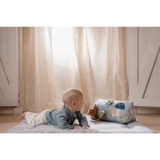 Polštářek z jemného, měkkého materiálu s krásnými motivy života v lese je speciálně navržený, aby podporoval hraní dítěte na bříšku. Hračky na polštářku i originální vyšívané aplikace lákají dítě ke zkoumání a pozorování. Každá strana polštářku je jiná, takže stačí polštářek otočit a nabídnout dítěti nové podněty k zabavení i rozvíjení jeho jednotlivých smyslů. Pro malého kojence, který tráví většinu dne i noci ležením na zádech, je důležité, aby trávil několikrát denně čas ležením na bříšku a takzvaným “pasením koníčků”. Poloha na bříšku přináší děťátku jiný pohled na svět a posiluje krční a zádové svaly, které mu později umožňují začít se přetáčet, lézt a sedět bez opory. Polštářek je součástí designové kolekce hraček Little Dutch Forest Friends inspirované životem v lese. Rozměry: 34 x 18 x 18 cm Vhodné pro děti od narození.