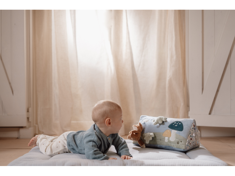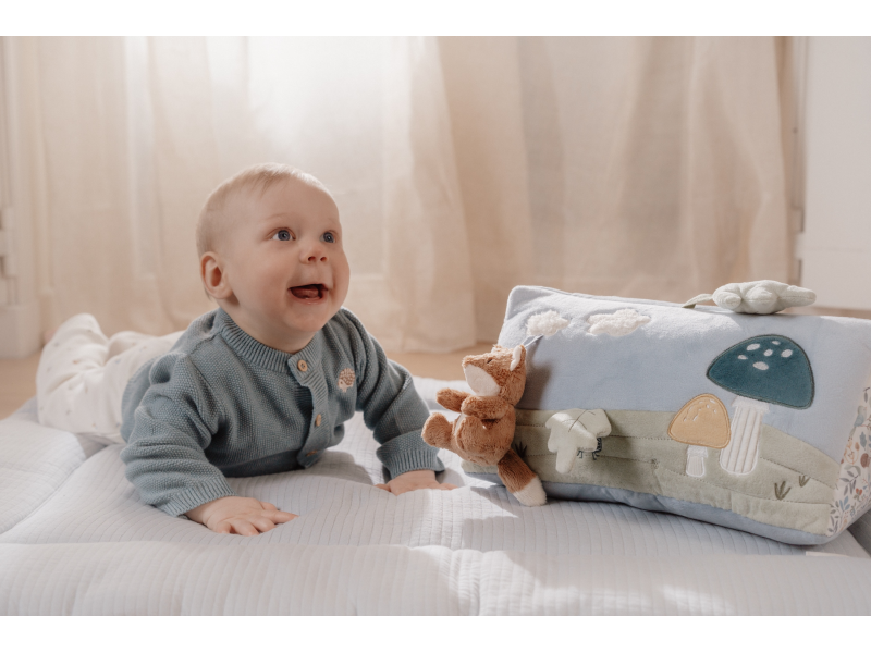 Polštářek z jemného, měkkého materiálu s krásnými motivy života v lese je speciálně navržený, aby podporoval hraní dítěte na bříšku. Hračky na polštářku i originální vyšívané aplikace lákají dítě ke zkoumání a pozorování. Každá strana polštářku je jiná, takže stačí polštářek otočit a nabídnout dítěti nové podněty k zabavení i rozvíjení jeho jednotlivých smyslů. Pro malého kojence, který tráví většinu dne i noci ležením na zádech, je důležité, aby trávil několikrát denně čas ležením na bříšku a takzvaným “pasením koníčků”. Poloha na bříšku přináší děťátku jiný pohled na svět a posiluje krční a zádové svaly, které mu později umožňují začít se přetáčet, lézt a sedět bez opory. Polštářek je součástí designové kolekce hraček Little Dutch Forest Friends inspirované životem v lese. Rozměry: 34 x 18 x 18 cm Vhodné pro děti od narození.