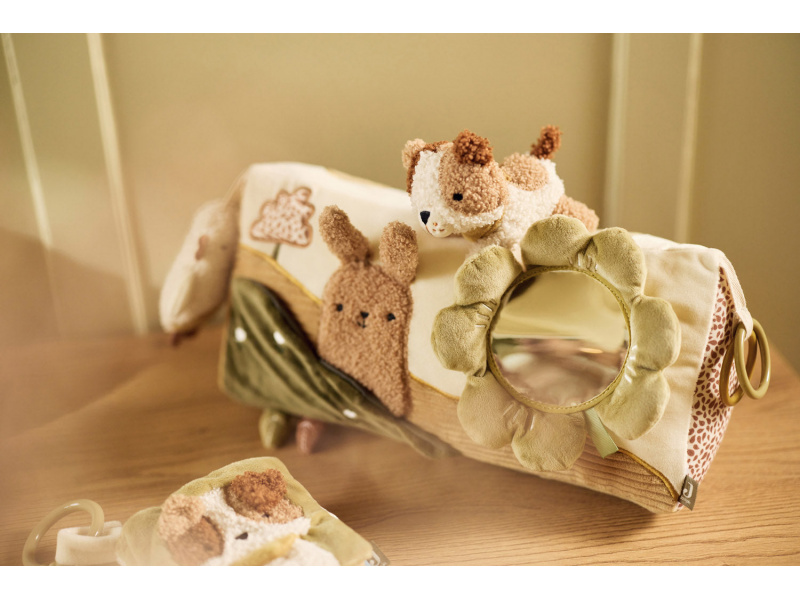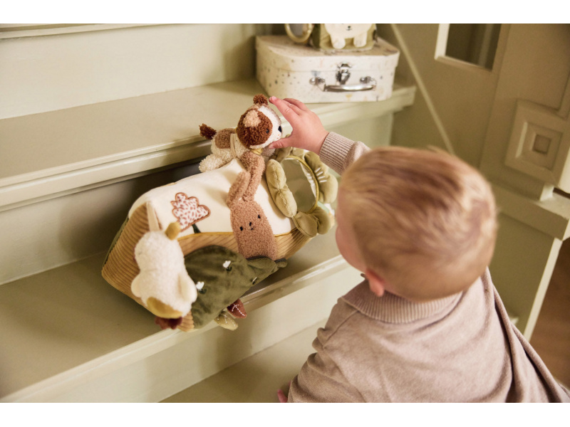 Měkký trojhranný polštářek s roztomilými zvířátky nabízí spoustu aktivit pro zábavu i rozvoj smyslů vašeho miminka. Tvar polštářku je ideální pro hraní v poloze na bříšku, která přináší dítěti jiný pohled na svět a posiluje krční a zádové svaly, které mu později umožňují začít se přetáčet, lézt a sedět bez opory. Různé aktivity a textury včetně bezpečného zrcátka podněcují dětskou zvídavost, podporují motoriku a smyslové vnímání Ideální pro hraní na bříšku, které pomáhá posilovat krční a zádové svaly Plyšový pejsek a ptáček a vyšitá postavička králíčka vytvářejí veselou a přátelskou atmosféru Vyrobeno z jemného polyesteru, který je příjemný na dotek a vhodný pro miminka Vhodný pro děti, které začínají objevovat svět kolem sebe Složení: 100 % polyester Rozměry: 36 × 17 × 16 cm Možno prát v ruce.
