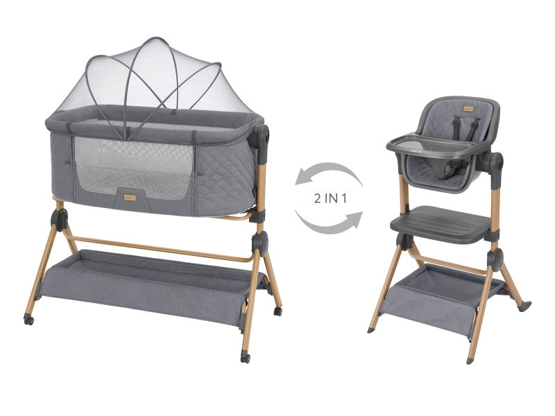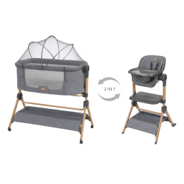 Postýlka a židlička 2v1 KikkaBoo Sleat Me nabízí praktické a stylové řešení pro rodiče, kteří hledají multifunkční vybavení s dlouhou životností. Postýlku pro miminko snadno přeměníte na jídelní židličku pro batole. Elegantní design s dřevěným vzhledem skvěle zapadne do každého interiéru. Postýlka (od narození do cca 6 měsíců, max. 9 kg): Funkce co-sleeping – postýlku lze bezpečně připevnit k posteli rodičů Lehký hliníkový rám s dekorem dřeva Výškově nastavitelná do 3 poloh Možnost nastavení náklonu proti refluxu Sklopná bočnice pro snadný přístup Síťované panely pro lepší cirkulaci vzduchu Pás pro upevnění k posteli rodičů Měkká pohodlná matrace 4 kolečka s brzdami pro snadný přesun Úložný prostor na hračky a doplňky Moskytiéra pro ochranu dítěte před hmyzem Jídelní židlička (pro děti do 3 let / max. 15 kg): Vhodná pro děti, které již samostatně sedí 5-bodový bezpečnostní pás Jídelní pult s možností nastavení do dvou poloh Měkká sedací podložka 3 výškové polohy Košík na hračky a drobnosti Rozměry postýlky: 60,5 × 102 × 87,5–91,5 cm Hmotnost: 9,8 kg Rozměry židličky: 68 × 57 × 103–107 cm Hmotnost: 7,6 kg Vhodné pro děti od narození do 3 let (max. 15 kg).
