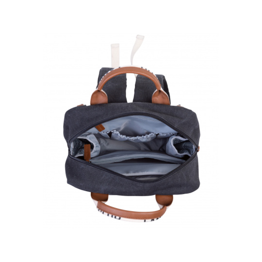Stylový unisex batoh bude díky svému nadčasovému designu vyhovovat mamince, tatínkovi i prarodičům! Do batohu snadno a přehledně sbalíte vše potřebné na procházky a výlety s miminkem a vaše ruce zůstanou volné. Součástí batohu je přebalovací podložka a termoizolační kapsy na láhev. Přehlednou organizaci obsahu batohu zaručuje množství vnitřních i vnějších kapes a úchytů. Díky speciální kapse pro vlhčené ubrousky jsou ubrousky vždy okamžitě po ruce připravené k použití. Úchyty na kočárek umožňují zavěšení batohu na rukojeť kočárku, úchyt na vytahovací rukojeť kufru vám usnadní cestování během dovolené. Díky kvalitnímu voděodolnému materiálu stačí batoh při znečištění otřít vlhkým hadříkem. Složení: 65% bavlna, 35% polyester, podšívka 100% nylon. Nosnost: 5 kg Objem 20,5 l Rozměry: 40 x 30 x 16 cm