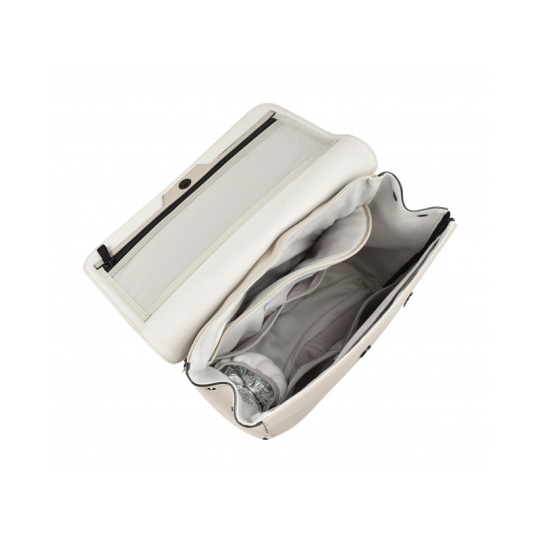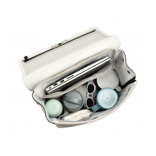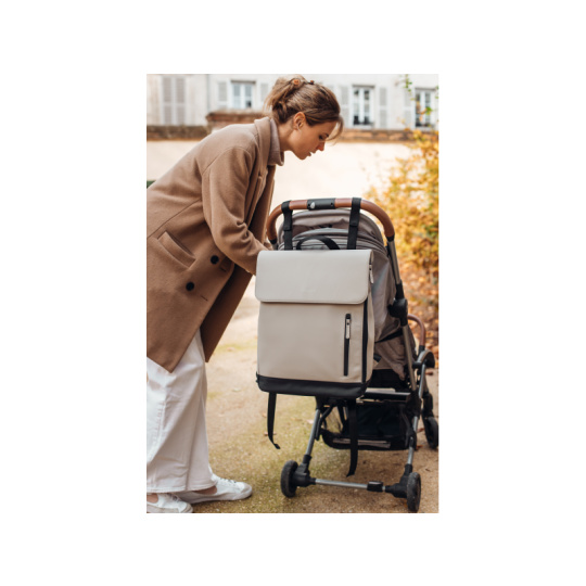 Stylový unisex batoh v minimalistickém designu skvěle doplní váš outfit a zároveň nabídne vše, co očekáváte od přebalovací tašky. Je vybaven jedenácti kapsami, včetně tří kapes na zip pro bezpečné uložení vašich cenných drobností. Součástí batohu je přebalovací podložka a vnitřní termoizolační kapsa na nápoj. Kromě horního vstupu s magnetickým uzávěrem batoh nabízí možnost přístupu z boku díky zipu po celé boční straně. Větrací panely na zadní straně a polstrované ramenní popruhy zpříjemňují nošení batohu na zádech. Držadlo umožňuje nošení v ruce, součástí batohu jsou i úchyty pro zavěšení na kočárek. Voděodolný vnější materiál usnadňuje údržbu, při znečištění stačí batoh otřít vlhkou houbičkou. Rozměry: 43 x 34 x 15 cm Objem: 19 l Složení: 100% polyuretan (bez PFAS), podšívka 100% polyester, dno a popruhy 100% recyklovaný polyester