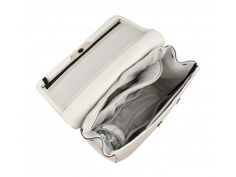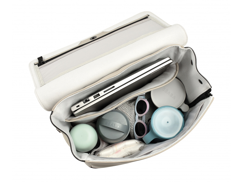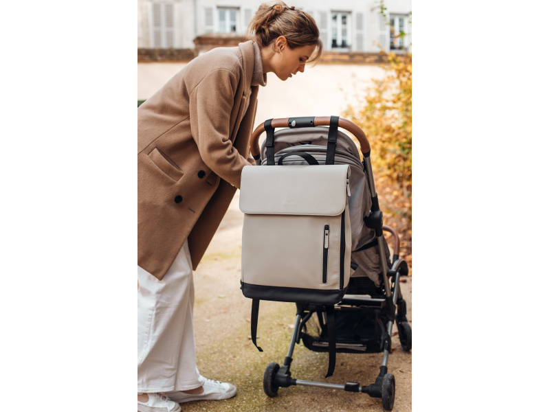 Stylový unisex batoh v minimalistickém designu skvěle doplní váš outfit a zároveň nabídne vše, co očekáváte od přebalovací tašky. Je vybaven jedenácti kapsami, včetně tří kapes na zip pro bezpečné uložení vašich cenných drobností. Součástí batohu je přebalovací podložka a vnitřní termoizolační kapsa na nápoj. Kromě horního vstupu s magnetickým uzávěrem batoh nabízí možnost přístupu z boku díky zipu po celé boční straně. Větrací panely na zadní straně a polstrované ramenní popruhy zpříjemňují nošení batohu na zádech. Držadlo umožňuje nošení v ruce, součástí batohu jsou i úchyty pro zavěšení na kočárek. Voděodolný vnější materiál usnadňuje údržbu, při znečištění stačí batoh otřít vlhkou houbičkou. Rozměry: 43 x 34 x 15 cm Objem: 19 l Složení: 100% polyuretan (bez PFAS), podšívka 100% polyester, dno a popruhy 100% recyklovaný polyester