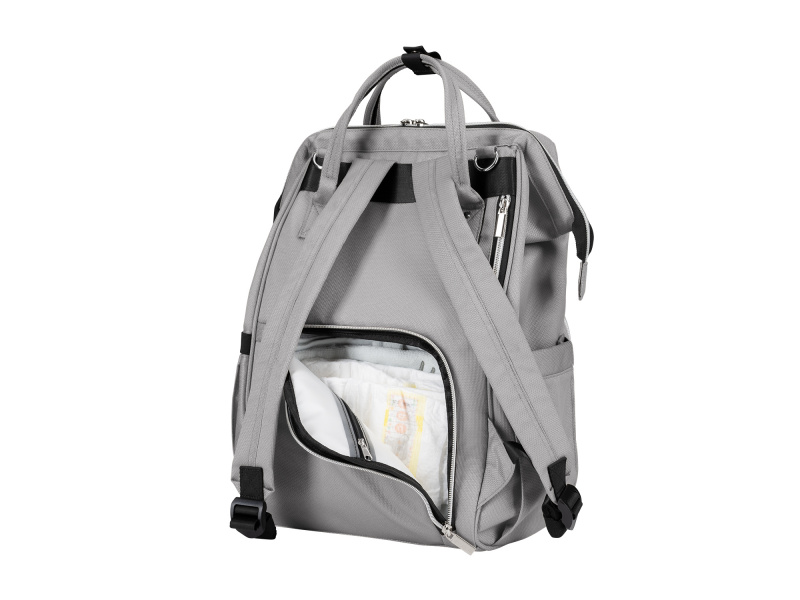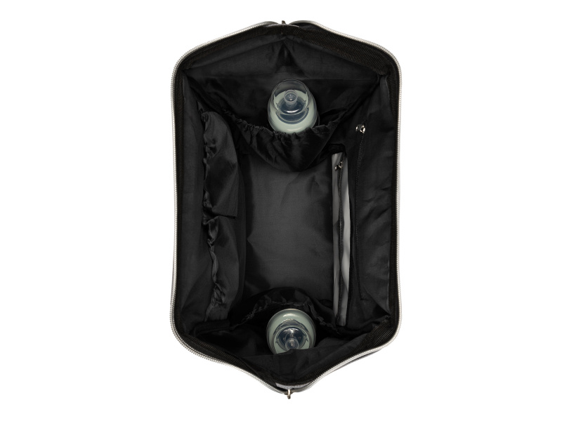 Stylový přebalovací batoh umožňuje přehledné uložení všeho potřebného na procházky a výlety s vaším dítětem. Klipy umožňují zavěšení na madla kočárku. Uvnitř batohu najdete množství kapes a přihrádek i voděodolnou kapsu pro uložení vlhkých předmětů. Široký způsob otevírání batohu usnadňuje orientaci v uloženém obsahu. Na vnější straně najdete kapsy s uzavíráním na zip i kapsu pro uložení láhve. Termoizolační kapsy na láhve pomáhají udržet nápoje či mléko delší dobu v optimální teplotě. Součástí batohu je i přebalovací podložka. Batoh je možné zavěsit na kočárek, nosit na zádech i v ruce. Složení: 100% polyester Rozměry: 44,5 x 35,5 x 47 cm