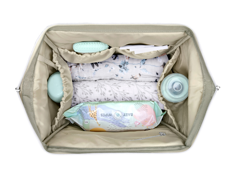 Stylový přebalovací batoh umožňuje přehledné uložení všeho potřebného na procházky a výlety s vaším dítětem. Klipy umožňují zavěšení na madla kočárku. Uvnitř batohu najdete množství kapes a přihrádek i voděodolnou kapsu pro uložení vlhkých předmětů. Široký způsob otevírání batohu usnadňuje orientaci v uloženém obsahu. Na vnější straně najdete kapsy s uzavíráním na zip i kapsu pro uložení láhve. Termoizolační kapsy na láhve pomáhají udržet nápoje či mléko delší dobu v optimální teplotě. Součástí batohu je i přebalovací podložka. Batoh je možné zavěsit na kočárek, nosit na zádech i v ruce. Složení: 100% polyester Rozměry: 44,5 x 35,5 x 47 cm